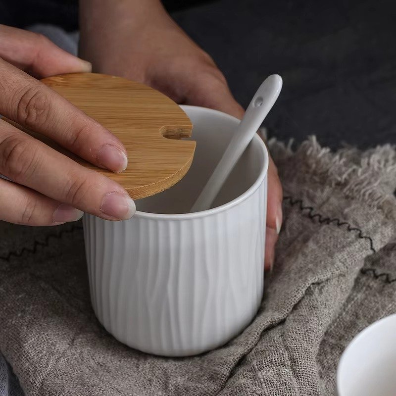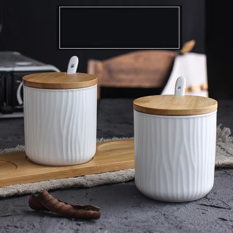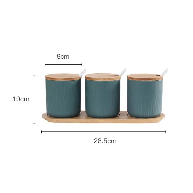 طقم برطمانات توابل سيراميكية محكمة الإغلاق بأغطية من الخيزران الطبيعي