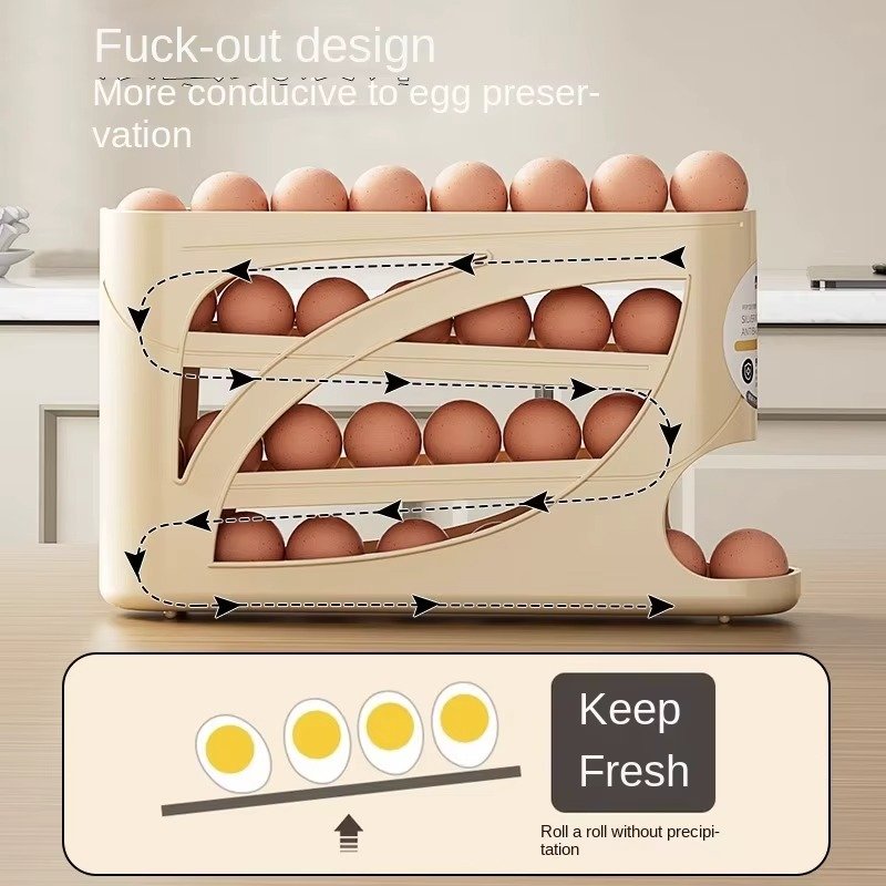 صندوق تخزين بيض مصنوع من بلاستيك سميك وآمن غذائيًا، بتصميم عصري قابل للسحب.