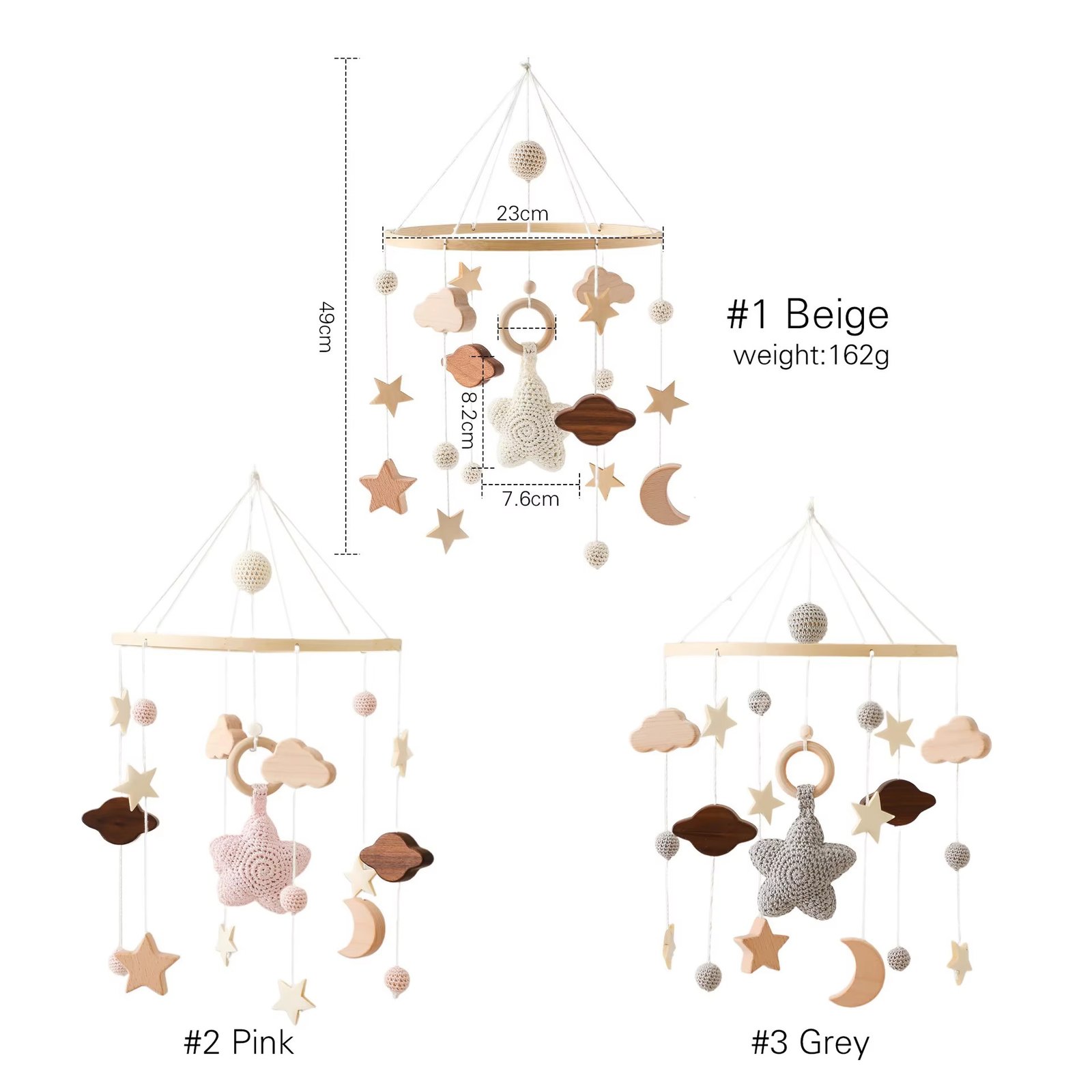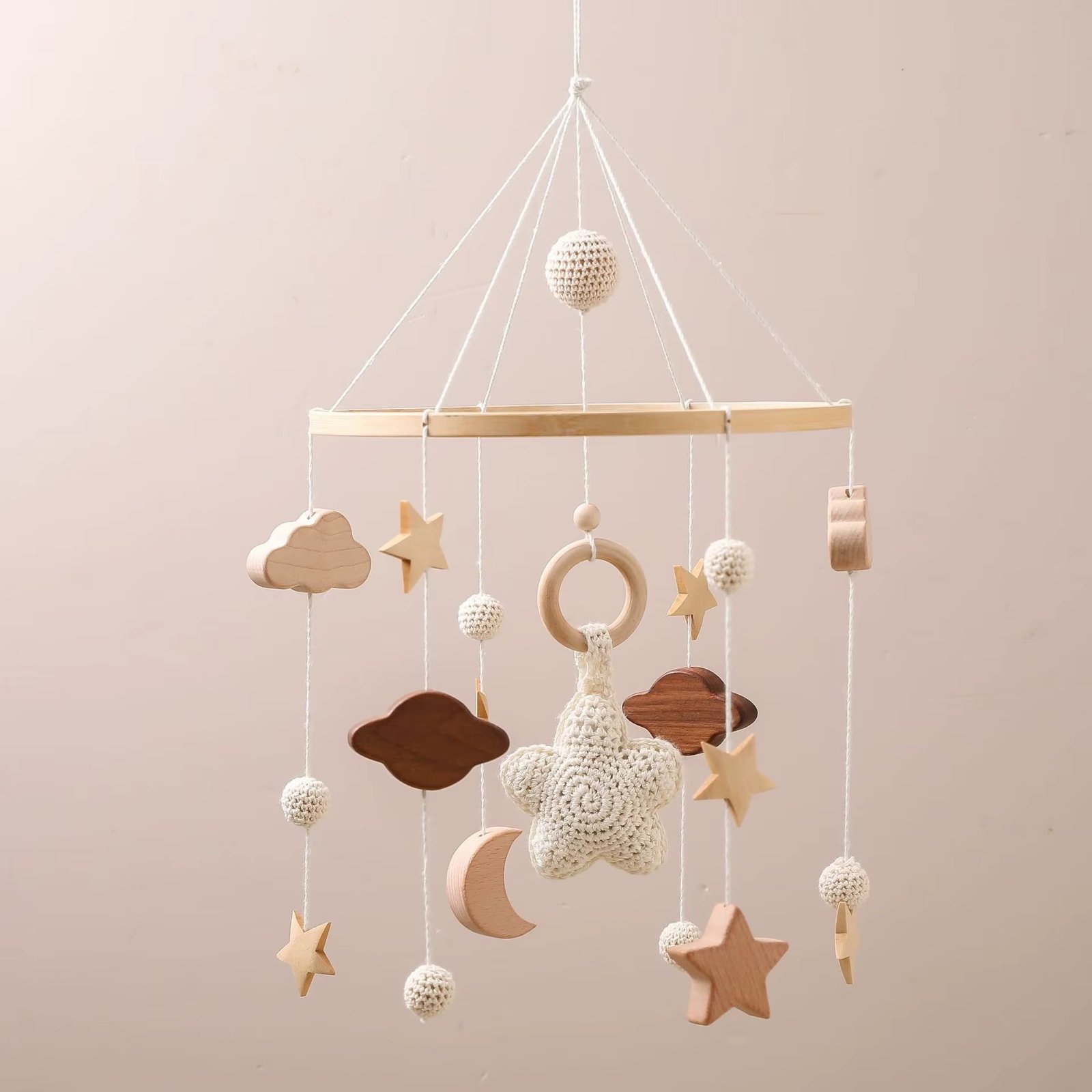 لعبة معلقة ناعمة لسرير الأطفال بتصميم بوهيمي، مصنوعة من خشب فاخر ومواد لباد ناعمة.