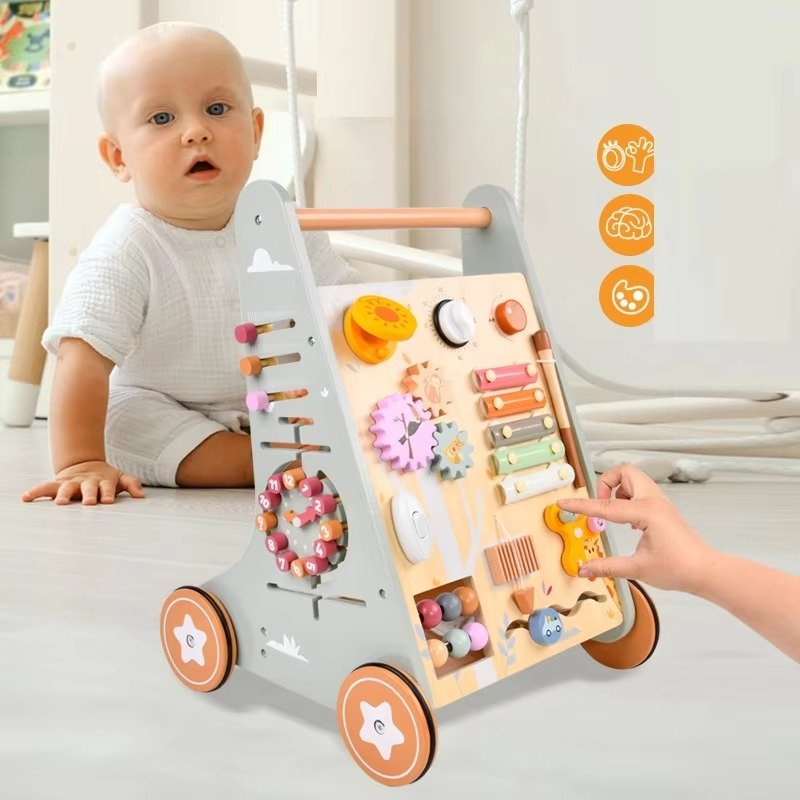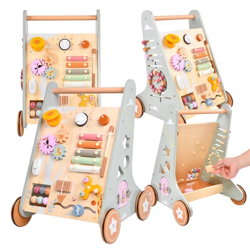 مشاية خشبية تعليمية للأطفال – عربة أنشطة مونتيسوري