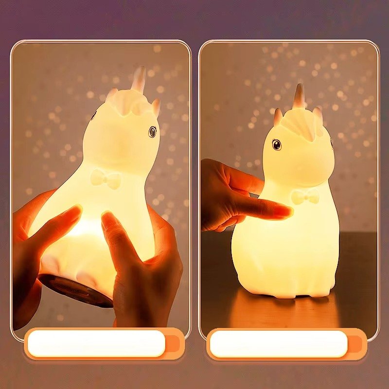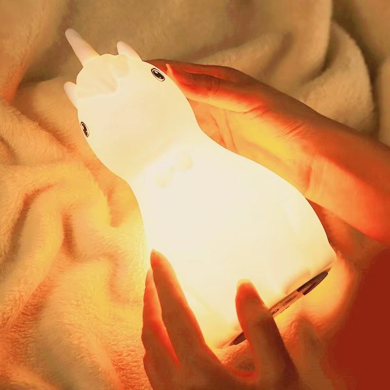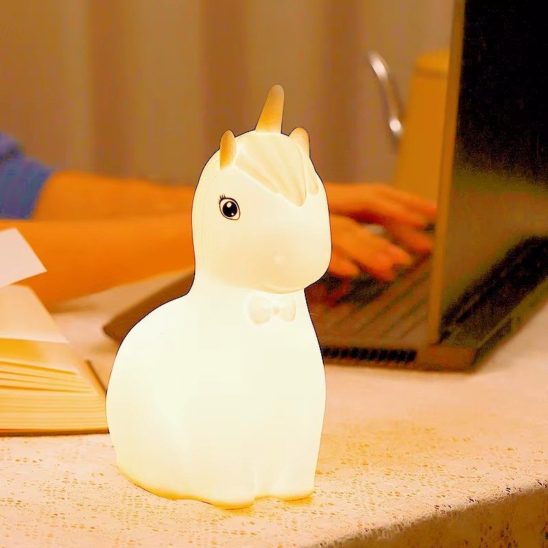 مصباح ليلي رائع على شكل وحيد القرن، مصنوع من السيليكون الناعم والآمن للأطفال.